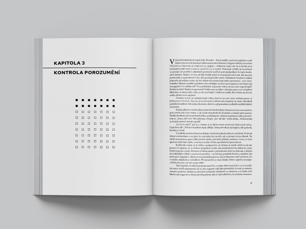 Objasňuje, jak na kontrolu porozumění, jak zvyšovat akademická očekávání a poměr kognitivní práce žáků, jak motivovat a zapojovat žáky, zlepšovat diskuse, podporovat důvěru, respekt a také předvídat, kdy je nutné usměrnit chování žáků tak, aby bylo pozitivní a produktivní.
